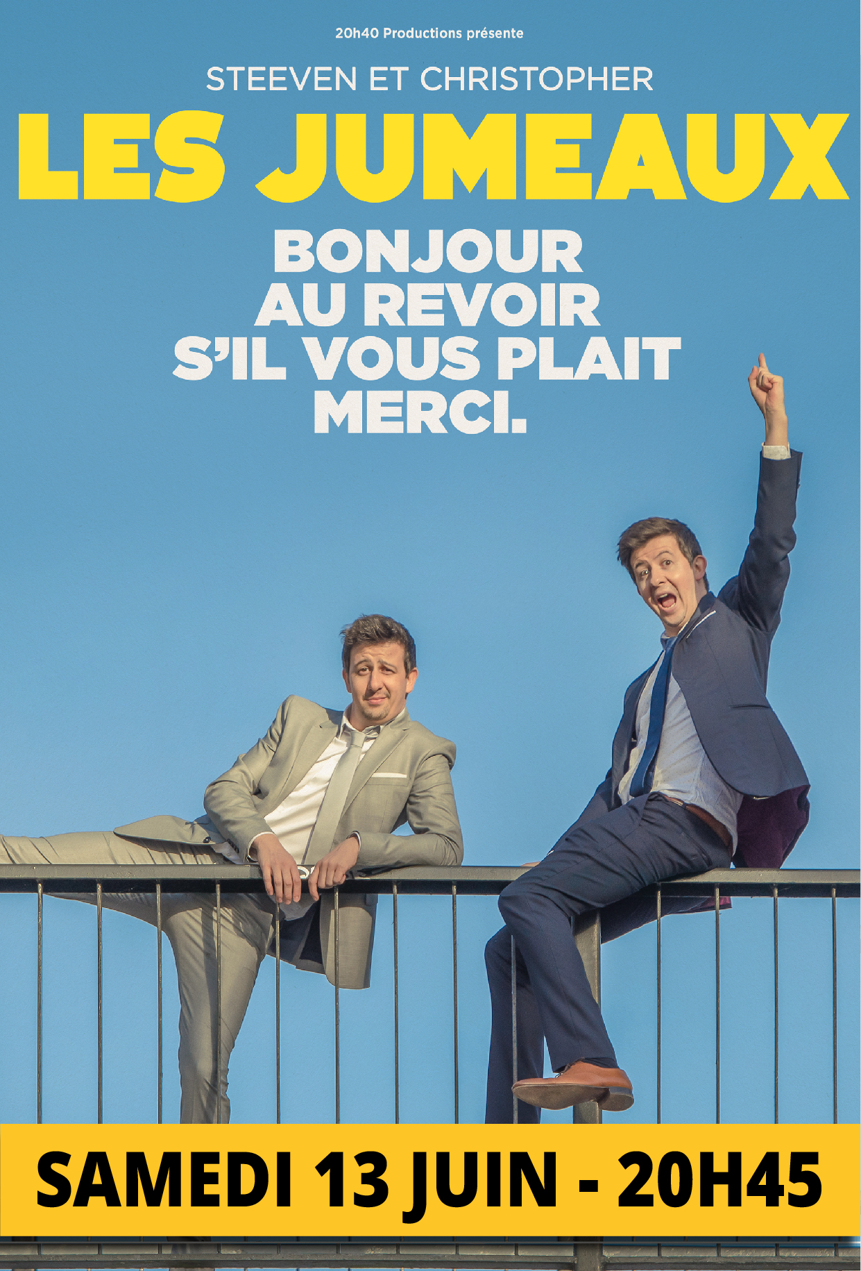 Anecdotes familiales, éducation, aléas du quotidien et fous rires garantis à 100 à l'heure ! Ne loupez pas le double one man show des Jumeaux.